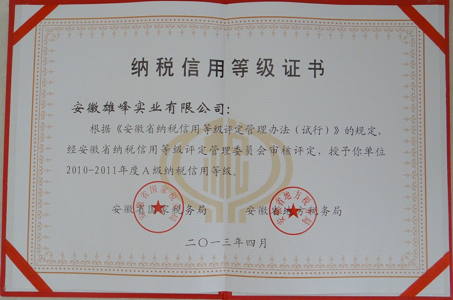 2013納稅信用等級證書
